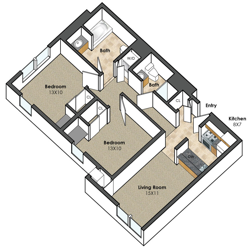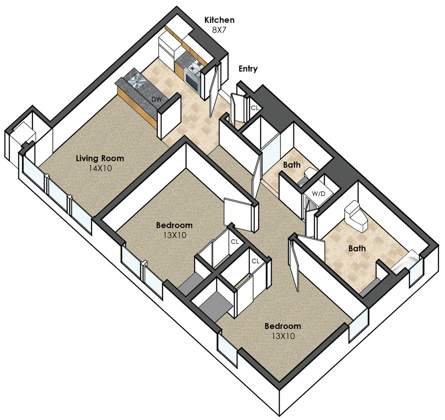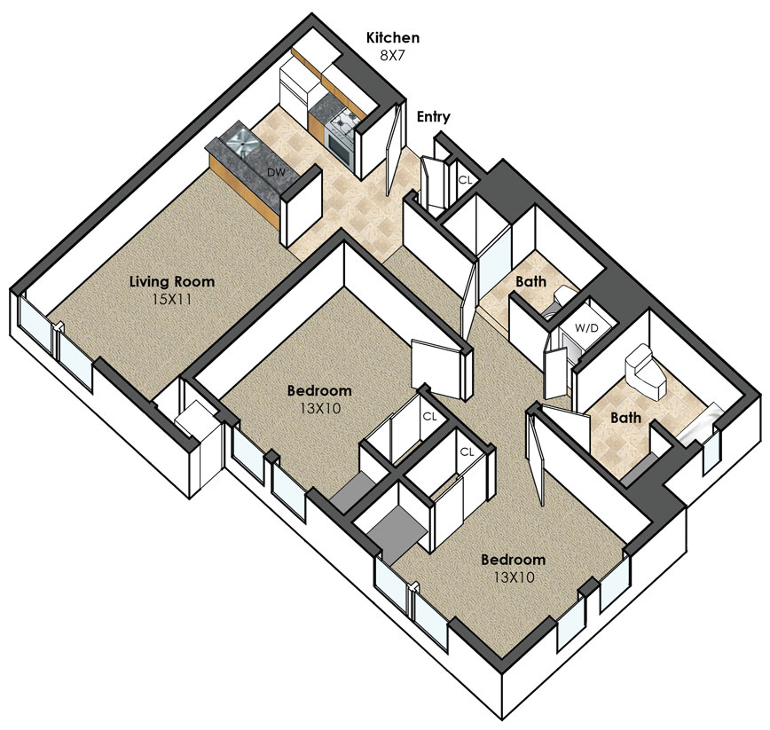 - Fully furnished with blinds, leather sofa, and full/queen beds. Some with work stations and walk in closets