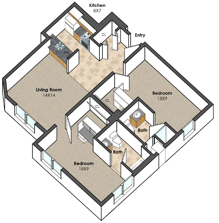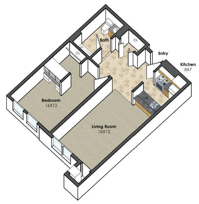 Unit D 1 bed, 1 bath | 690 SF |