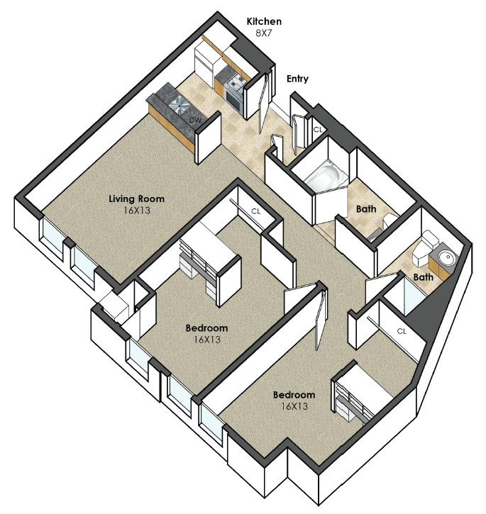 Unit B 2 bed, 2 bath | 920 SF |