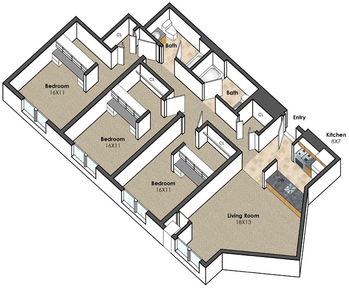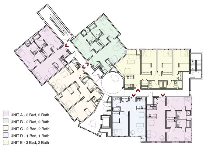 | Unit E 3 bed, 2 bath | 1290 SF |